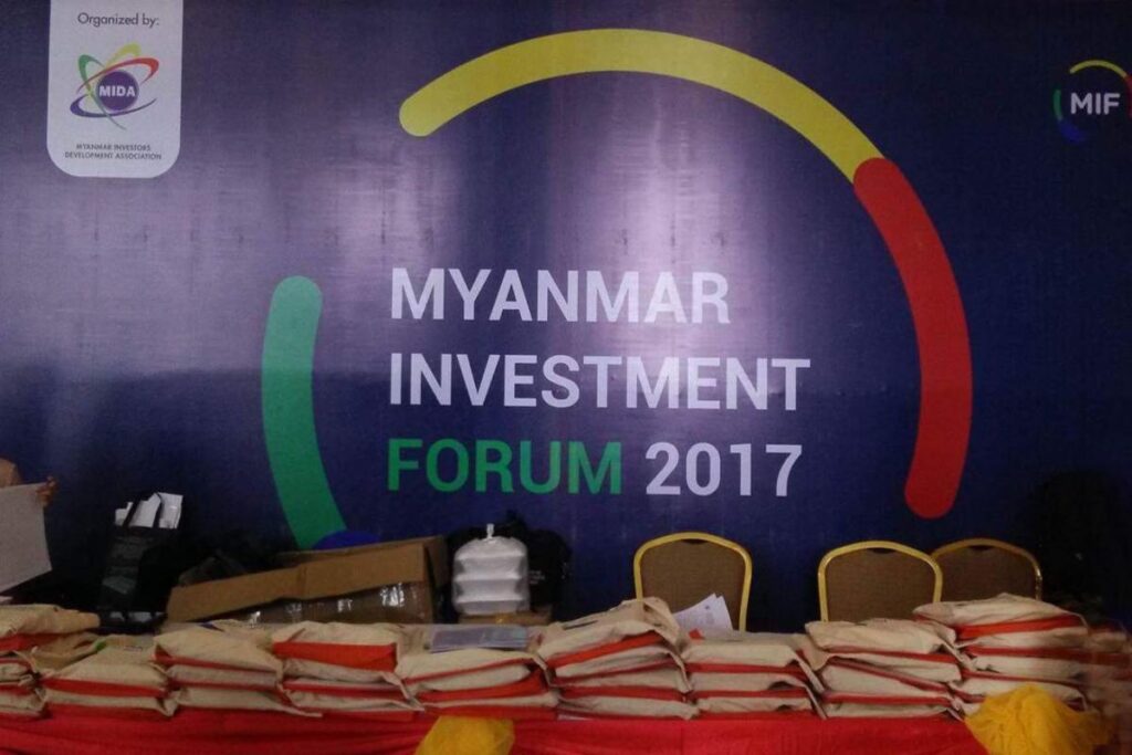 Myanmar Investment Forum 2017 Leave a Comment / 新闻 / By Bitwissendtek ၂၀၁၇ ခုနှစ် ဇွန်လ (၆) ရက်နှင့် (၇)ရက်နေ့က နေပြည်တော်ရှိ MICC-2 ခန်းမတွင်ကျင်းပပြုလုပ်သော Myanmar Investment Forum (2017) ပြပွဲတွင် ပုသိမ်စက်မှုစီမံကိန်းမှ ပြခန်းတစ်နေရာ ပါဝင်ခင်းကျင်းပြသခဲ့ပါသည်။ ပြခန်းသို့ စိတ်ပါဝင်စားစွာဖြင့် လာရောက်ကြည့်ရှုလေ့လာသူ ဧည့်သည်တော်များအား ပုသိမ်စက်မှုစီမံကိန်းမှ အထူးကျေးဇူးတင်ရှိပါသည်။