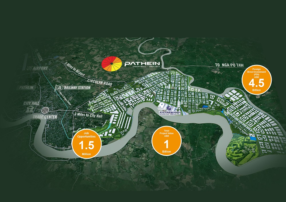 Pathein Industrial Project, PIP is being developed by Ayeyarwaddy Development Public Company Limited which was established in June 2012 under Myanmar Companies Act to create an international-scale industrial zone, a river port, located south of Pathein City, Ayeyarwaddy Region.